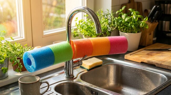 Eine einfache schwimmbadnudel erweist sich in der küche als überraschende lösung für ein alltägliches problem